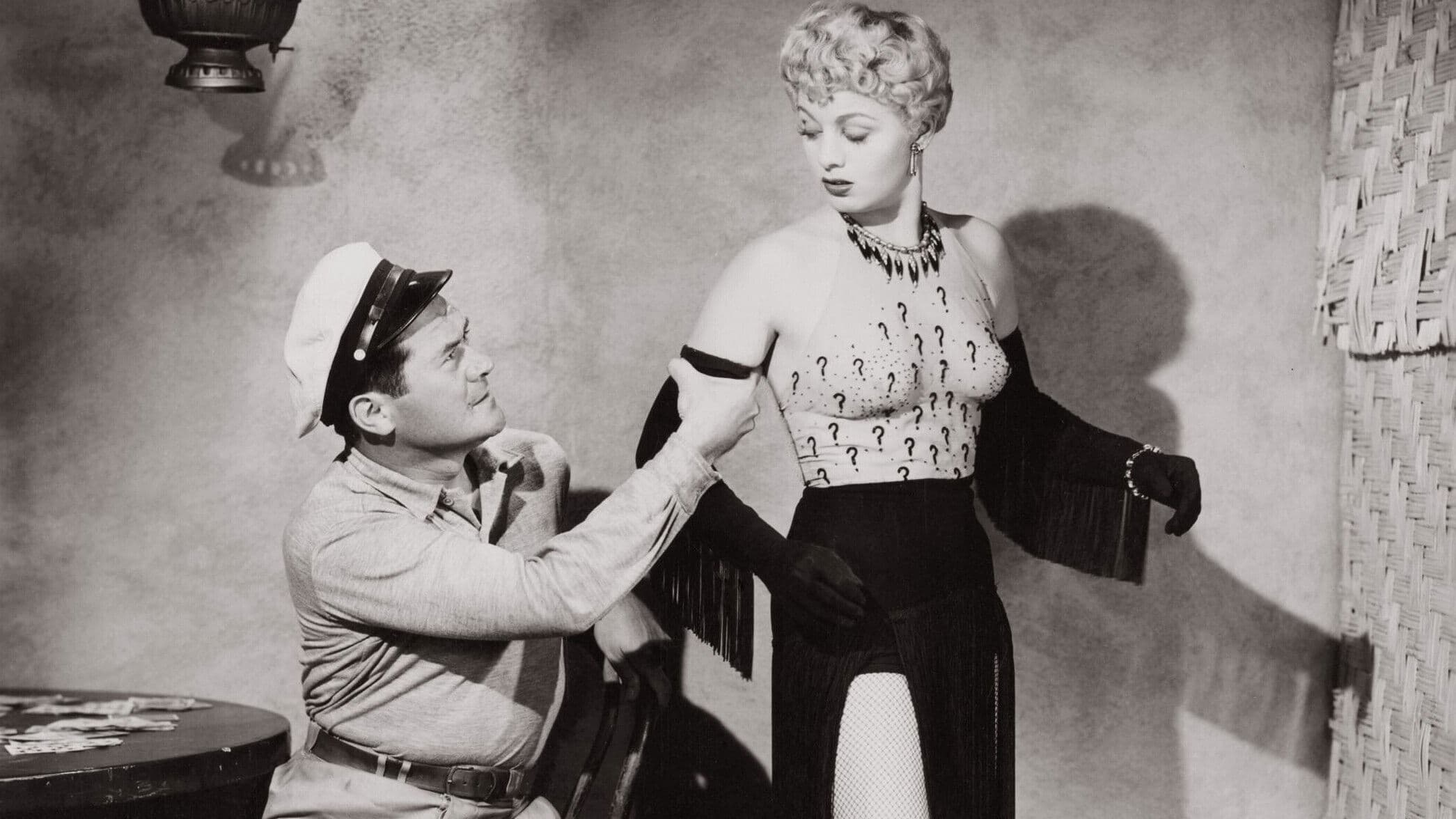 A tramp steamer lands sick crewman Jake Davis on rubber-growing island Oraka, from which voluptuous, bedroom-eyed saloon singer Coral is about to be ejected because "men like her too much." But Coral's slimy boss Cognac gets her a reprieve so she can learn Jake's secret.
