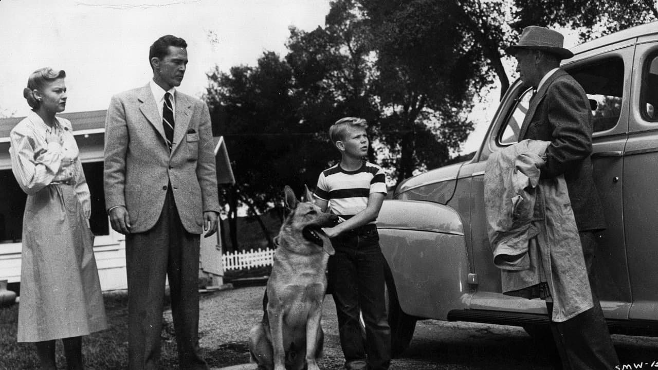 A boy tries to protect his dog, a German shepherd that served with U.S. Army forces after it begins attacking strangers several years after the war.